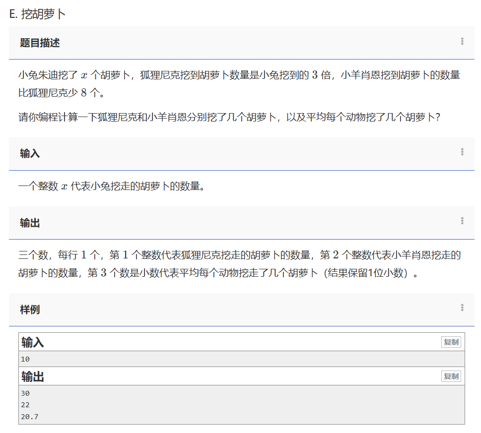 - 输入处理:程序读取整数 ( x )(小兔挖的胡萝卜数)。